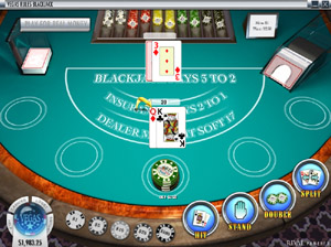 All wordplay aside, while Rival’s blackjack game selection is pretty scant, it has nothing to be ashamed of. This blackjack game features rich, bold graphics and some of the smoothest animated play we’ve seen—a testament to its solid software platform and their dedication to the player experience. It also provides the ability to change the speed at which the cards are dealt, and a player can also select his or her preference regarding a full-screen or floating-screen size.
