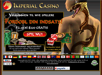 Imperial Casino minder om det fjerne Østen for dem af os, der kan lide at rejse. Der er en matchende bonus med den første indbetaling, der altså tilpasser sig dit spillebehov. Både indbetaling og udbetaling fungerer fint og hurtigt.