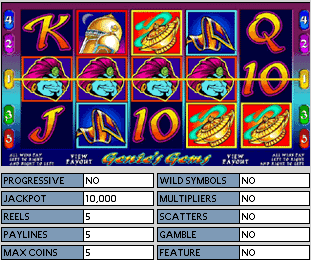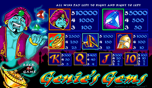 Genies Gems - 5 Spulen, 5 Bezahlungslinien. Münzgröße ordnet von .25 Cent bis zu 5.00 Euro an.