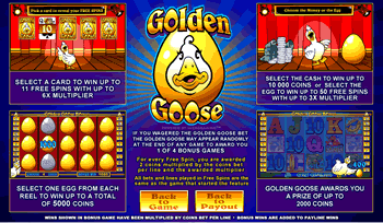 Sie müssen zusätzliche 5 Münzen pro Linienwette pro Drehung für die Bonus-Eigenschaft der Goldenen Gans wetten.