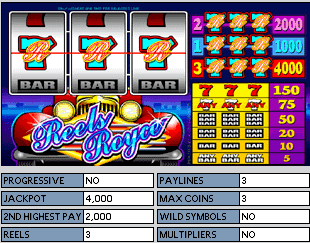 Spulen Royce - 3 Spulen, 3 Bezahlungslinien. Münzgröße ordnet von .25 Cent bis zu 5.00 Euro an. Sie können von 1 bis 3 Linien spielen.
