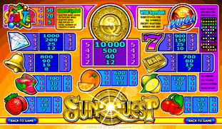 Sun Quest - 5 Spulen, 9 Bezahlungslinien. Münzgröße ordnet von .25 Cent bis zu 5.00 Euro an.