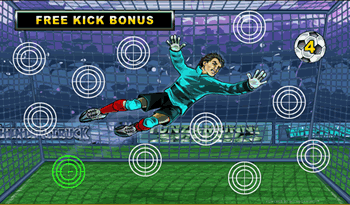 Stellen Sie drei oder mehr Trophäen für eine Bonus-Eigenschaft auf, wo Sie um Ziele für einen Fußballschuß wählen können. 3 Auswahlen für drei Trophäen, 4 Auswahlen für 4 Trophäen und 5 Auswahlen für 5 Trophäen. Jedes Ziel wird einen Eurobetrag beifügen, und Sie gewinnen den Betrag, der mit dem Ziel geht, das Sie wählten.