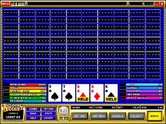 Das Beliebte Video Poker Aces & Faces, beruhend auf ein Standard Poker-Spiel ohne Wilde karten. In dieser Version spielen Sie 100 Hände.