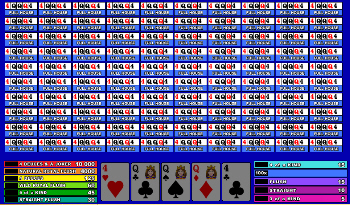 Estará jugando 100 manos o sea que la pantalla podrá parecer un poco atestada. Podrá ver los resultados después de cada mano, en la barra de combinaciones (combinación bar) situada por la derecha y la izquierda abajo de la pantalla. En su mano podrá ver 5 cartas caras arribas (llamada “decisión hand”).