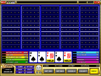 Deuces Salvaje 50 manos vídeo póker, juega 50 manos a la vez en este juego de poker video y todos los dos son comodines. Hay 10 combinaciones ganadoras.