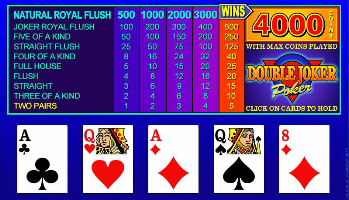 Doble Bromista vídeo póker es un juego poker súper divertido que utilizada una bajada de 52 cartas mas 2 jokers que actúan como comodines.