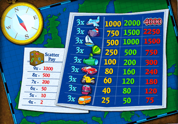 Grandi vancanze - 3 rulli, 8 linee di vincite. Il taglio dei gettoni va da un centesimo a 5 $ per linea.
