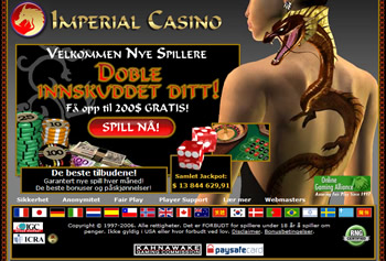 Imperial Casino har den fjerne Østen i tankene og passer god for oss som liker å reise. Kasinoet har en $200 matchende bonus og raske utbetalinger.