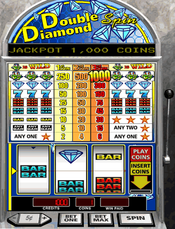 Choose “The Double Diamond” game and you can adjust your bet from 5 cents per line up to $25 per line.