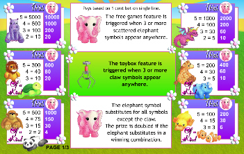 The game features a wild symbol, a feature bonus game and free spins. The wild symbol is the Pink Elephant which can be used to complete any winning combination except scatters. It also doubles any prize when used in a winning combination.