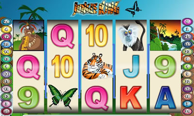 All the Jungle King slot play is from left to right and/or right to left with the exception of the Jungle Scene scatter, which lands and pays out where it wants.