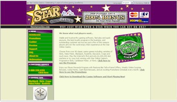 該網站易於瀏覽且介面友善,提供此恒星賭場的所有功能,包括「預覽」頁面在內,用戶可在此觀看遊戲的螢幕畫面。 遊戲列表始終以較大字體顯示;在 80 多個遊戲中,包括經典遊戲如二十一點、輪盤賭、雙骰子及百家樂,以及更多創新遊戲,如二十一點投降、賭場德州撲克、擲骰子、牌九撲克、紅狗撲克及其它遊戲。 您將發現各種吃角子老虎機,包括常規機及視訊機;其中有些是全新的,如 Desert Treasure、A Night Out 及 Dr. Lovemore。